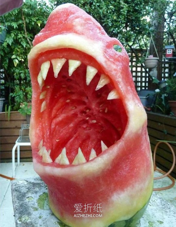 一组西瓜的雕刻作品,不仅仅是西瓜皮,连瓤也一起进行了雕刻创作,完成的作品生动的让人有点胆战心惊!