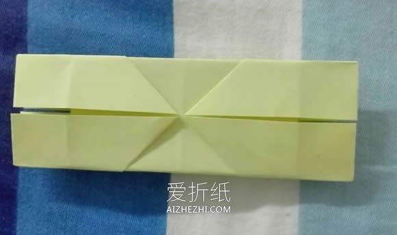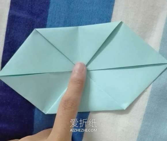 接着拿出蓝色纸,开始折蜻蜓的身体。同样先折出十字折痕。