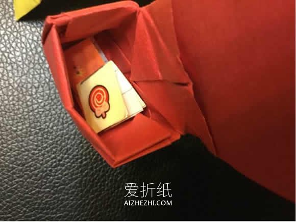 再把两根背带也如图插到纸缝里,可以涂胶固定。