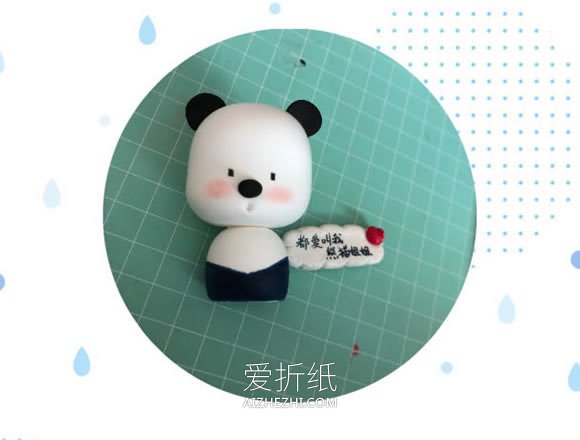 最后用黑色粘土做超短的腿,可爱的粘土熊猫制作完成!