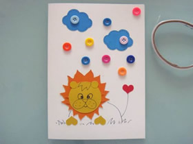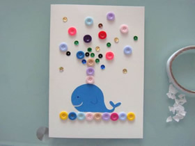 最后在椰子树上粘贴纽扣作为椰子,并在空白处贴亮片,漂亮的父亲节贺卡做好了!
