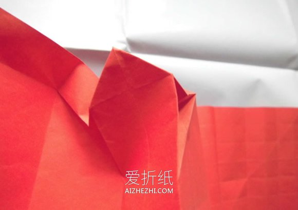 两条绿线之间、绿线与黑线之间对折即可。同时在没有画线的部分尽可能少地留下折痕。取大格的中心点,45°角折两条斜线。