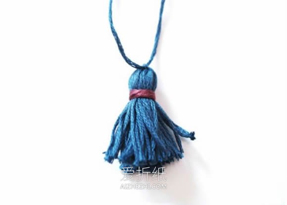 最后把蓝色绳底部剪开,可爱的穗子就制作完成了!