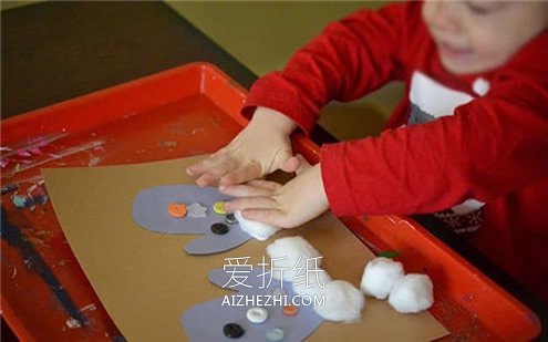 需要准备:卡纸、棉花球、纽扣、白乳胶、剪刀、记号笔。