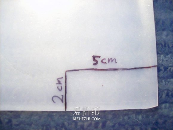 在一个塑料瓶的两侧距离门口3厘米处做一个标记。然后涂上热胶并粘上其中一个长方形。