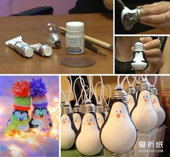 坏掉的白炽灯泡,画成最可爱的小企鹅挂件。