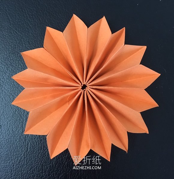 只需要跟着步骤学会一个基本单元的折法,然后再重复折出7个单元,将它们粘合在一起,就可以得到一朵16个花瓣的漂亮纸花。