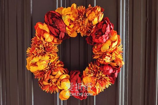 手工花环的种子作方法图解,金黄色主题,仿佛看到了秋天。思路很简单,用缎带将环形泡沫板包裹起来,再粘贴花朵即可。按照下面的图片,只需几个步骤就可以将这个花环做出来。如果你感兴趣,不妨尝试一下!