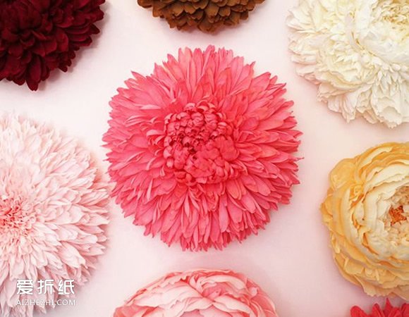 一组漂亮的纸花作品,用皱纹纸为材料制作,看上去美艳极了,将鲜花摆放在旁边恐怕都会失色几分!