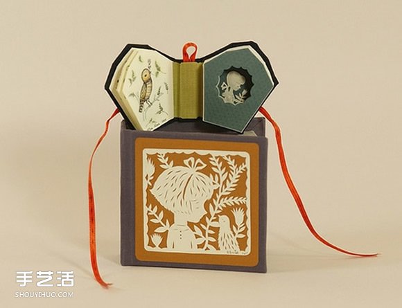 2007年开始她在etsy开了一个手工小店,贩卖自己的作品。下面这些手工小本子,有些是惊艳的连环画,大部分则是精美的剪纸作品,一幅图便是一个故事,而封面的漂亮图案也是由她亲手绘制而成。